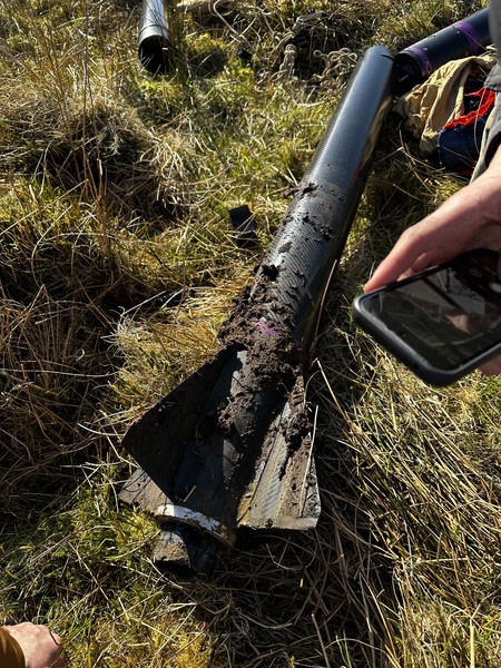 Because of this, the rocket hit the ground at about 40m/s. That’s what we call suboptimal. Luckily the ground it hit was a deep bog which somewhat softened the landing. All things considered the rocket was in remarkable condition for this landing, the avionics system was perfectly fine, none of the expensive recovery components were damaged, and the nose cone was in perfect condition. The same could not be said for our aft tube or the very expensive brand new fin can.