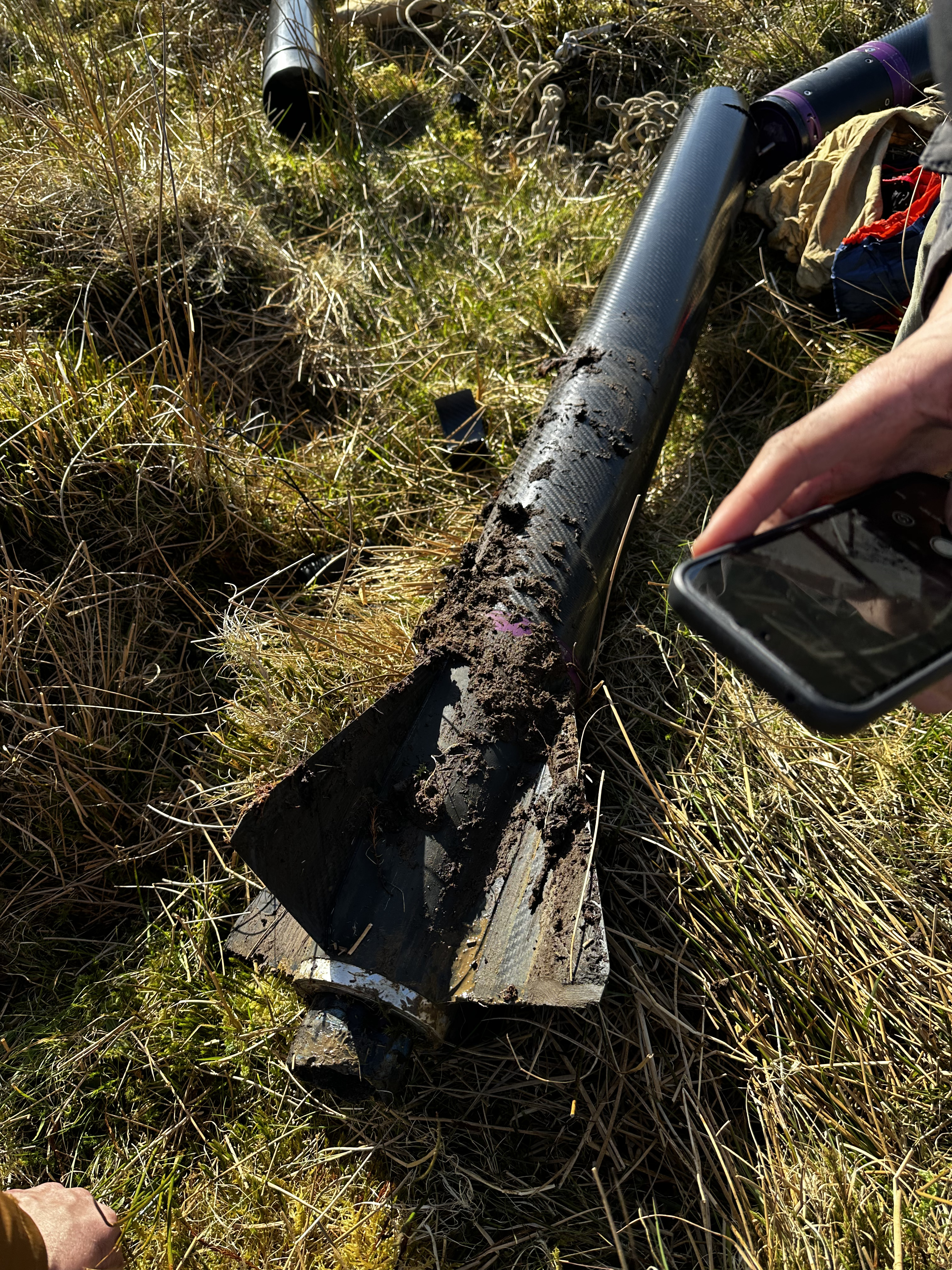 Because of this, the rocket hit the ground at about 40m/s. That’s what we call suboptimal. Luckily the ground it hit was a deep bog which somewhat softened the landing. All things considered the rocket was in remarkable condition for this landing, the avionics system was perfectly fine, none of the expensive recovery components were damaged, and the nose cone was in perfect condition. The same could not be said for our aft tube or the very expensive brand new fin can.